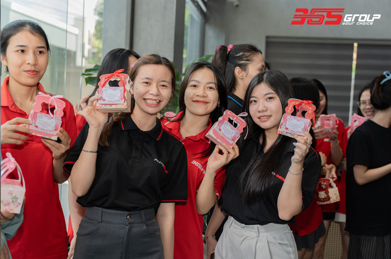 Để tôn vinh những “đóa hoa” tươi đẹp của tập thể, 365Group đã chuẩn bị những phần quà tuy nhỏ nhưng chứa đựng tình cảm chân thành. Đó không chỉ là món quà đơn thuần, mà còn là sự ghi nhận cho những nỗ lực miệt mài và đóng góp thầm lặng của các chị em trong suốt chặng đường vừa qua. Buổi trao quà diễn ra trong không khí ấm áp và tươi vui, mang đến những giây phút gắn kết, sẻ chia và đầy cảm xúc giữa các thành viên trong đại gia đình 365Group.